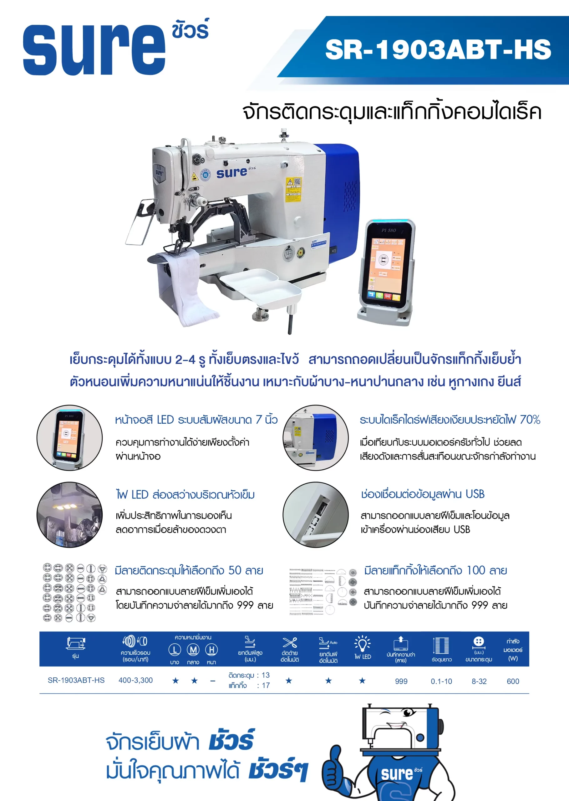 จักรติดกระดุมและแท็กกิ้งคอมไดเร็ค SURE