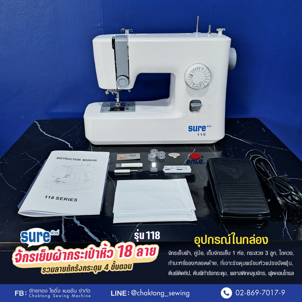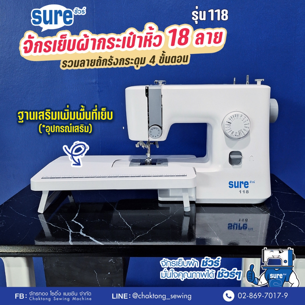 จักรเย็บผ้ากระเป๋าหิ้วซิกแซก 18 ลาย SURE รุ่น 118